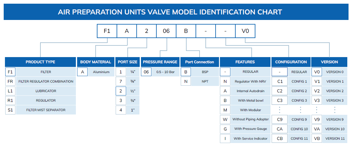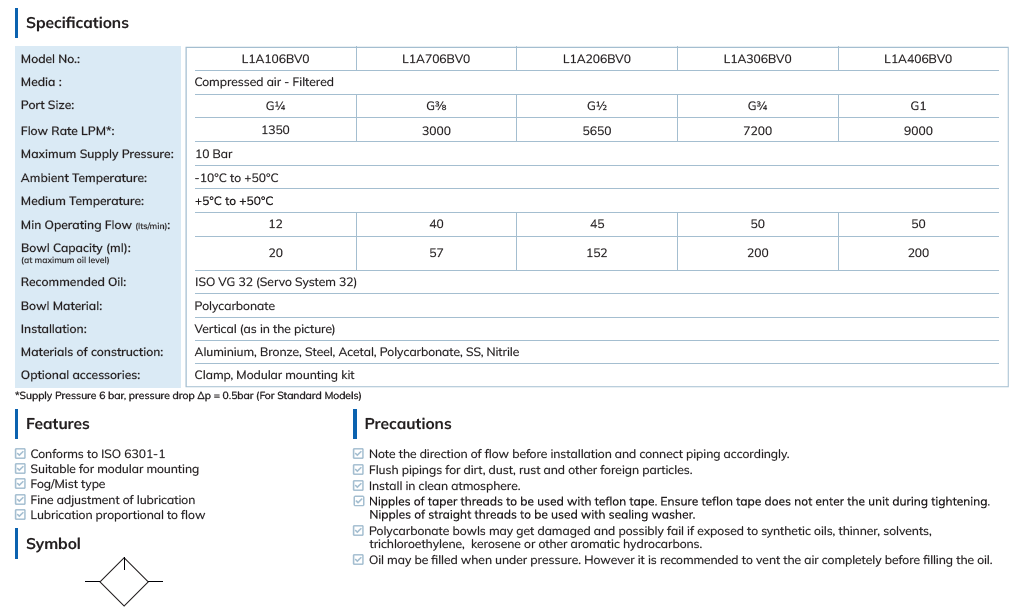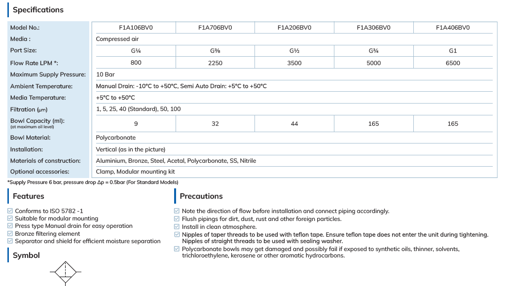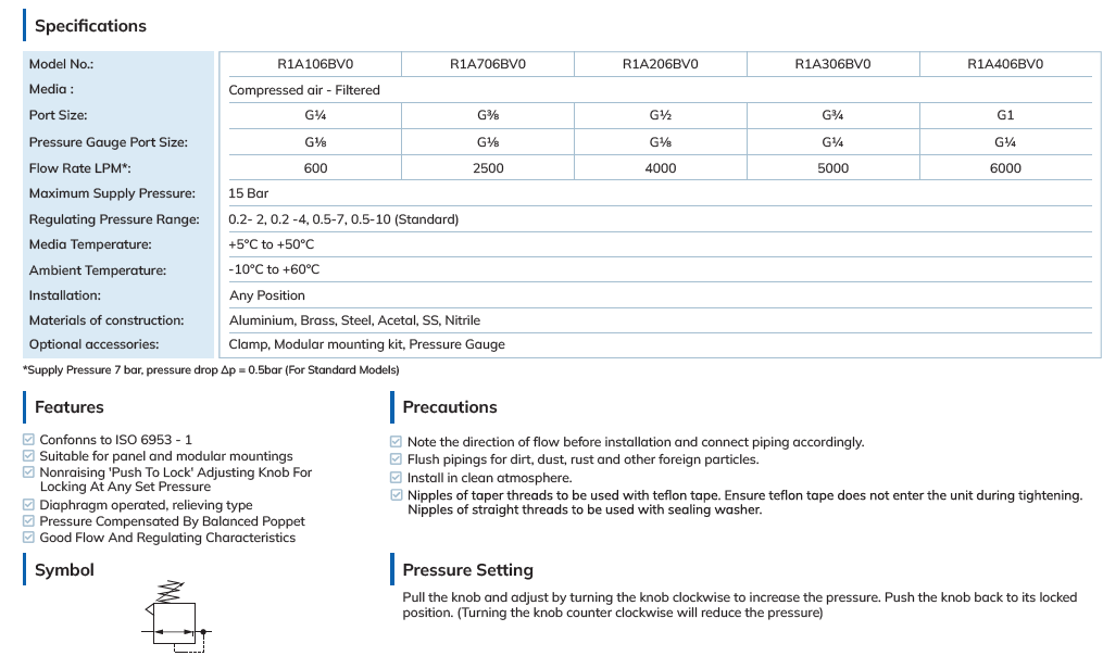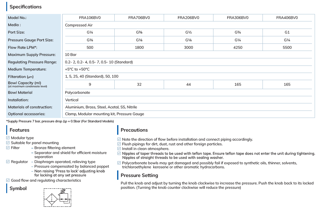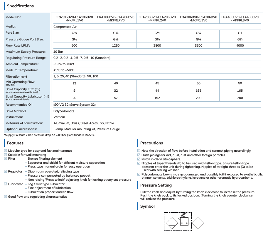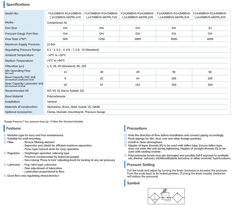 Air Filter (Manual Drain) F1A106BV0, Air Filter (Manual Drain) F1A206BV0, Air Lubricator L1A106BV0, Air Lubricator L1A206BV0, Air Regulator R1A106BGV0, Air Regulator R1A106BV0, Air Regulator R1A206BGV0, Air Regulator R1A206BV0, Filter Regulator Combination (Manual Drain) FRA106BGV0, Filter Regulator Combination (Manual Drain) FRA106BV0, Filter Regulator Combination (Manual Drain) FRA206BGV0, Filter Regulator Combination (Manual Drain) FRA206BV0, FRCL Modular (Manual Drain) FRA106BV0-L1A106BGV0-MKFRL1V0, FRCL Modular (Manual Drain) FRA106BV0-L1A106BV0-MKFRL1V0, FRCL Modular (Manual Drain) FRA206BV0-L1A206BGV0-MKFRL2V0, FRCL Modular (Manual Drain) FRA206BV0-L1A206BV0-MKFRL2V0, FRL Modular (Manual Drain) F1A106BV0-R1A106BGV0- L1A106BV0-MKFRL1V0, FRL Modular (Manual Drain) F1A106BV0-R1A106BV0- L1A106BV0-MKFRL1V0, FRL Modular (Manual Drain) F1A206BV0-R1A206BGV0- L1A206BV0-MKFRL2V0, FRL Modular (Manual Drain) F1A206BV0-R1A206BV0- L1A206BV0-MKFRL2V0